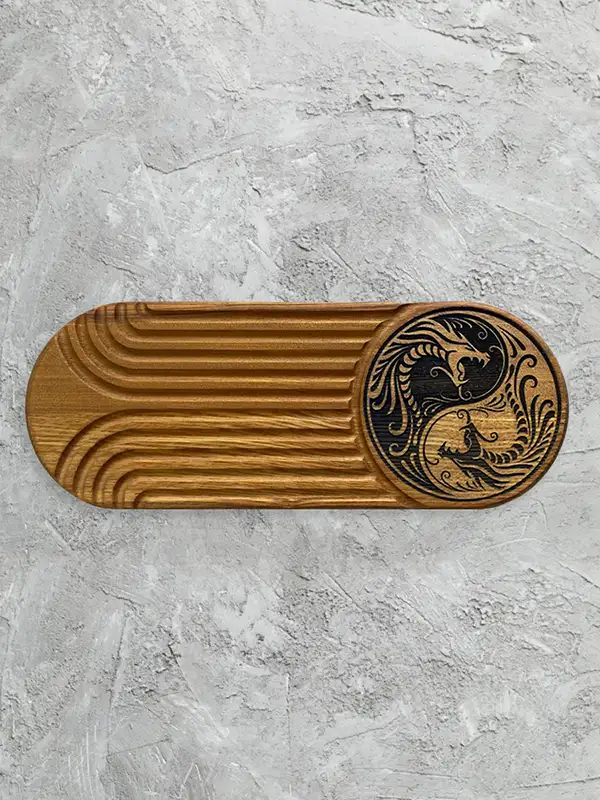 Деревянная менажница в виде кленового листа выполнена из благородного дальневосточного ясеня. Обладает исключительной устойчивостью к износу и растрескиванию.