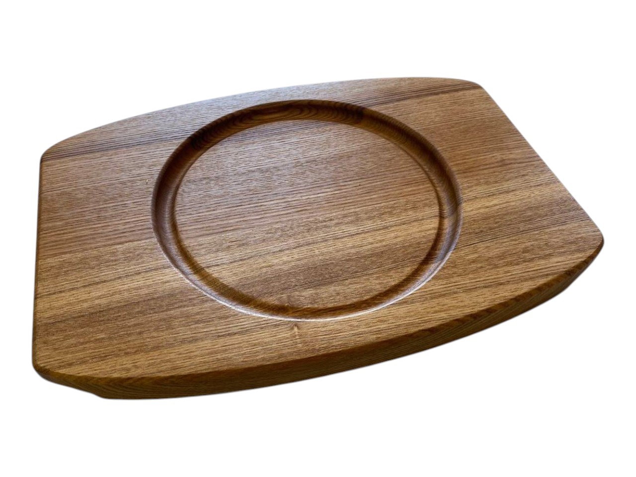 Это подставка из массива ясеня — ваш надежный помощник для красивой и безопасной подачи горячего. Умная круглая выемка в центре надежно фиксирует сковороду или кастрюлю, предотвращая соскальзывание, а удобные боковые ручки делают перенос блюда простым и безопасным. Прочная древесина ясеня не боится высоких температур и станет элегантным украшением вашего стола, идеально дополняя сервировку от завтрака до ужина.