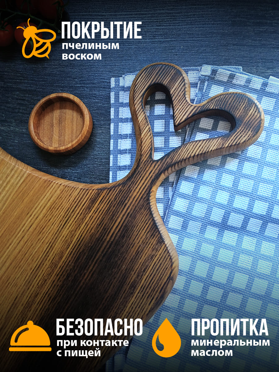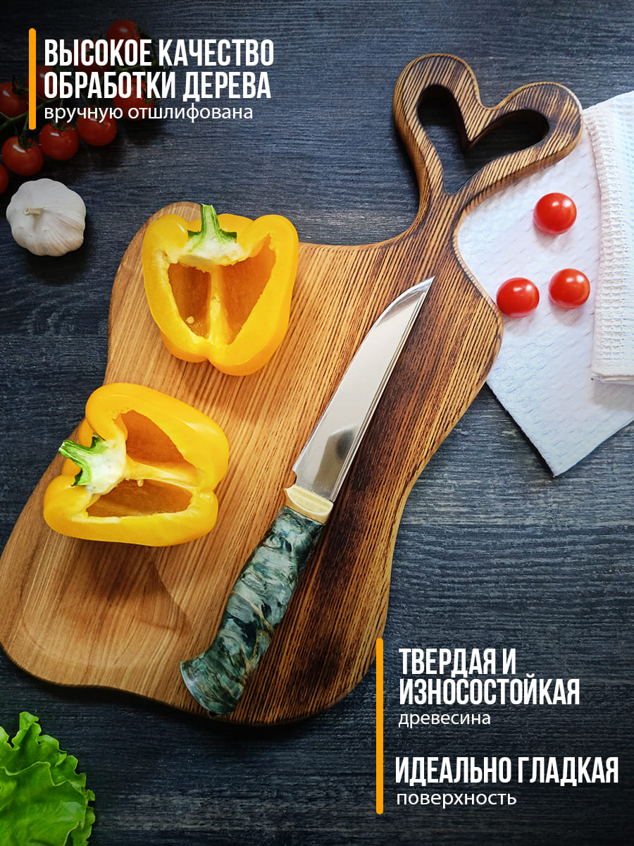 Доска «Сердце» с обожением не просто функциональна, но и обладает стильным дизайном, что делает её прекрасным дополнением к любому интерьеру. Вы сможете использовать её как для повседневных нужд на кухне, так и для создания эффектных подач во время семейных ужинов или праздников. Каждый раз, когда вы будете на ней работать, она станет вашим надежным помощником, который добавит еще больше радости в процесс готовки.