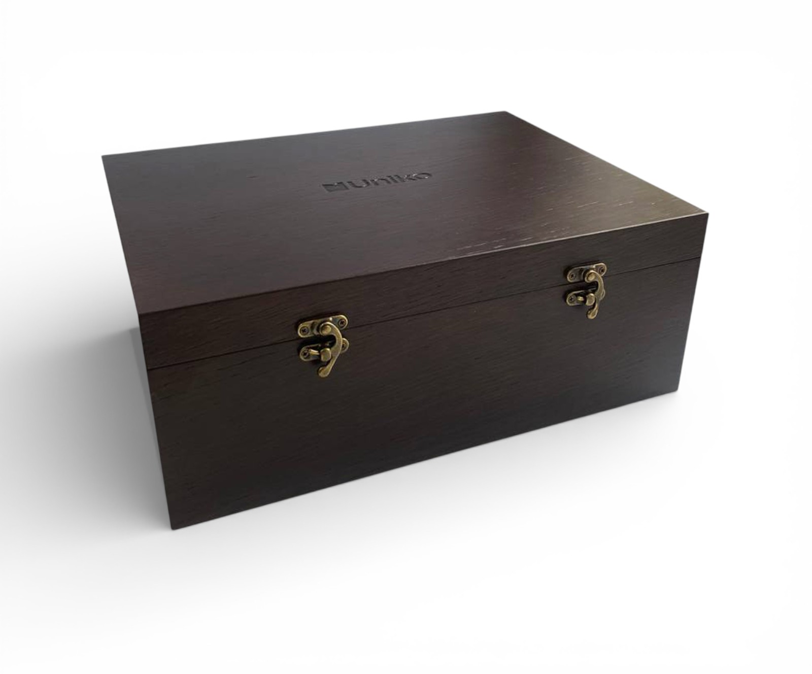 Создайте идеальную шкатулку по вашим правилам. Мы изготовим её для вас из массива ясеня с учетом всех пожеланий: выберите размер, цвет и уникальную гравировку. Надежные металлические защелки золотистого цвета не только обеспечивают безопасное хранение, но и придают изделию особый шарм.